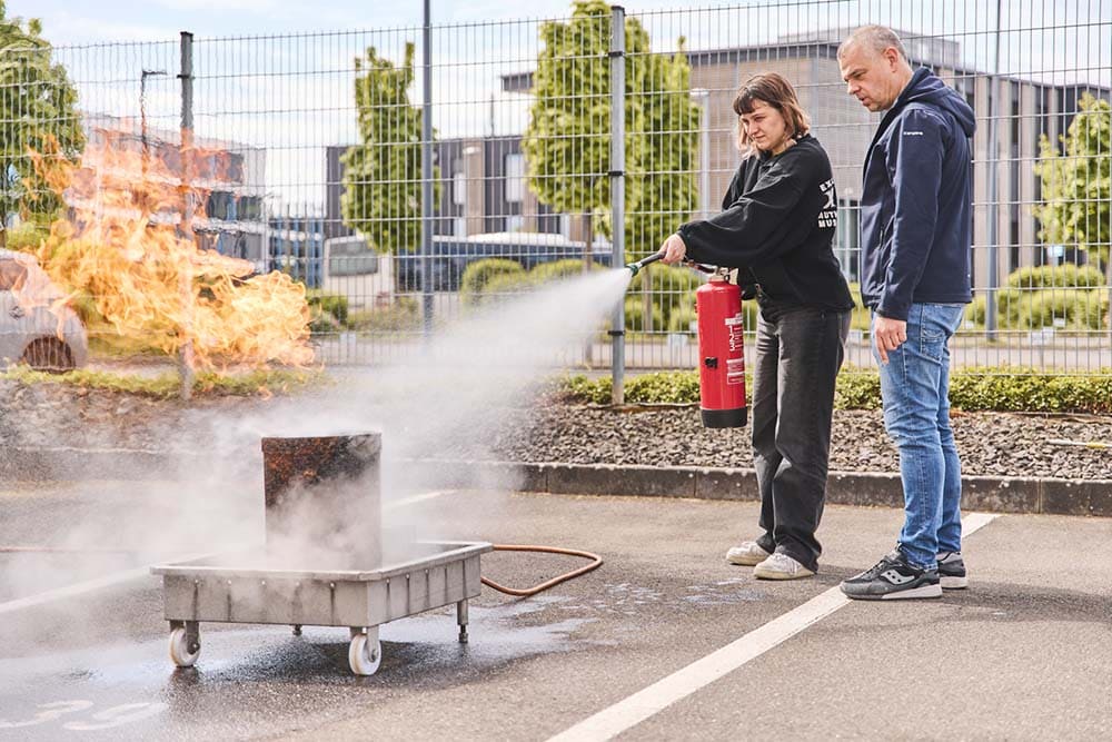 Die Inhalte der Brandschutzhelfer Schulung setzen sich aus einem theoretischen und einem praktischen Teil zusammen. Im theoretischen Abschnitt werden die Grundlagen des Brandschutzes, das Verhalten im Brandfall sowie die betriebliche Brandschutzorganisation behandelt. Im Praxisteil lernen die Teilnehmenden den sicheren Umgang mit einem Feuerlöscher und erleben eine besondere Vorführungen einer Fettbrandexplosion und den Zerknall eines Druckbehälters.